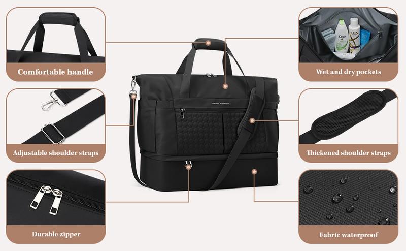 Versatile Use: Use it as an airplane travel bag, luggage tote bag, gym bag, weekend duffel, carry-on bag, or beach bag.