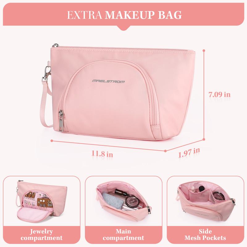 Shoe Compartment and Cosmetic Bag: Keep shoes separate in the waterproof, easy-to-clean compartment with two ventilation ports.